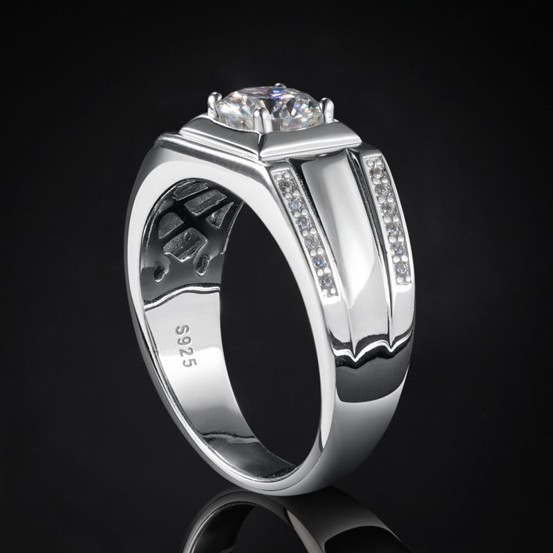 1Ct Moissanite Round Cut Men's Engagement Ring in S925 Sterling Silver