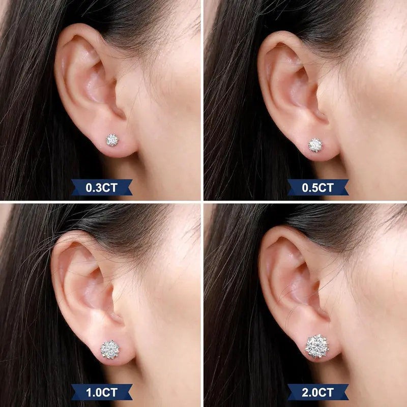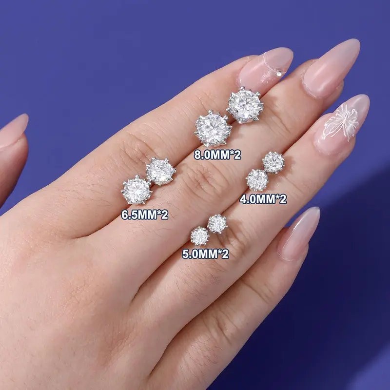 Unisex 0.3ct/0.5/1/2 CT Moissanite Round Cut Snowflake Earrings in S925 Sterling Silver