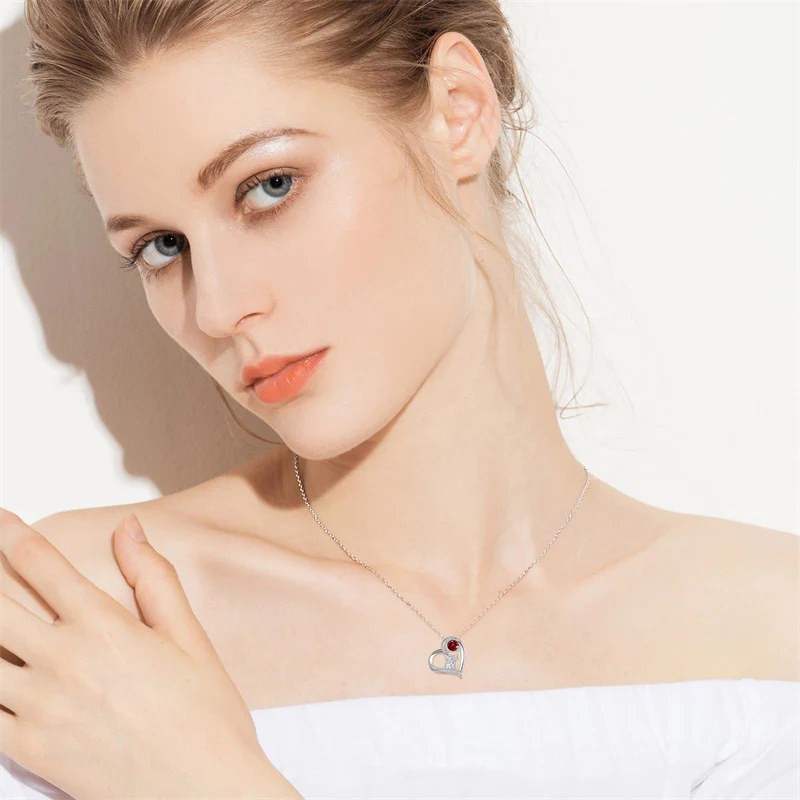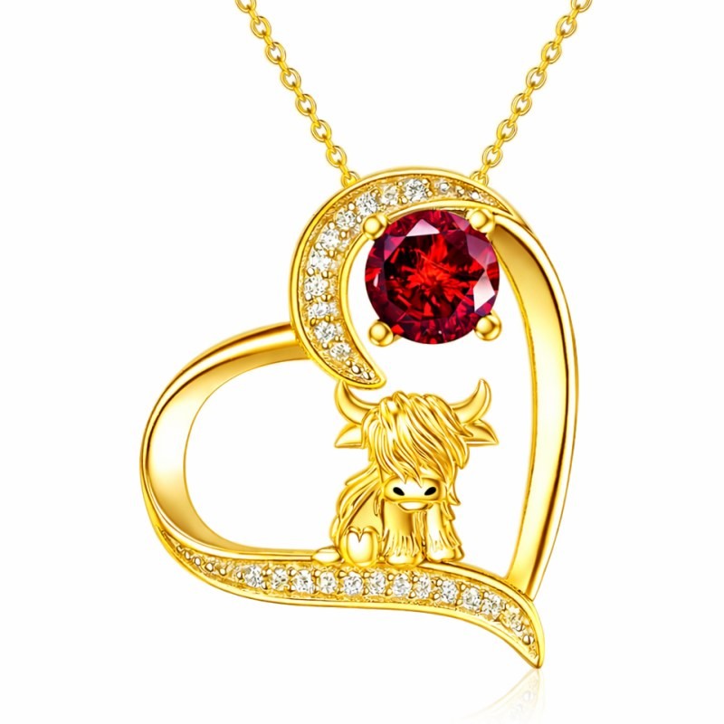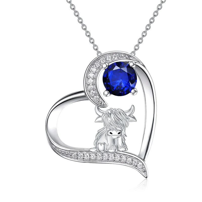 Heart Shape Highland Cattle 925 Sterling Silver Birthstone Pendant Necklace