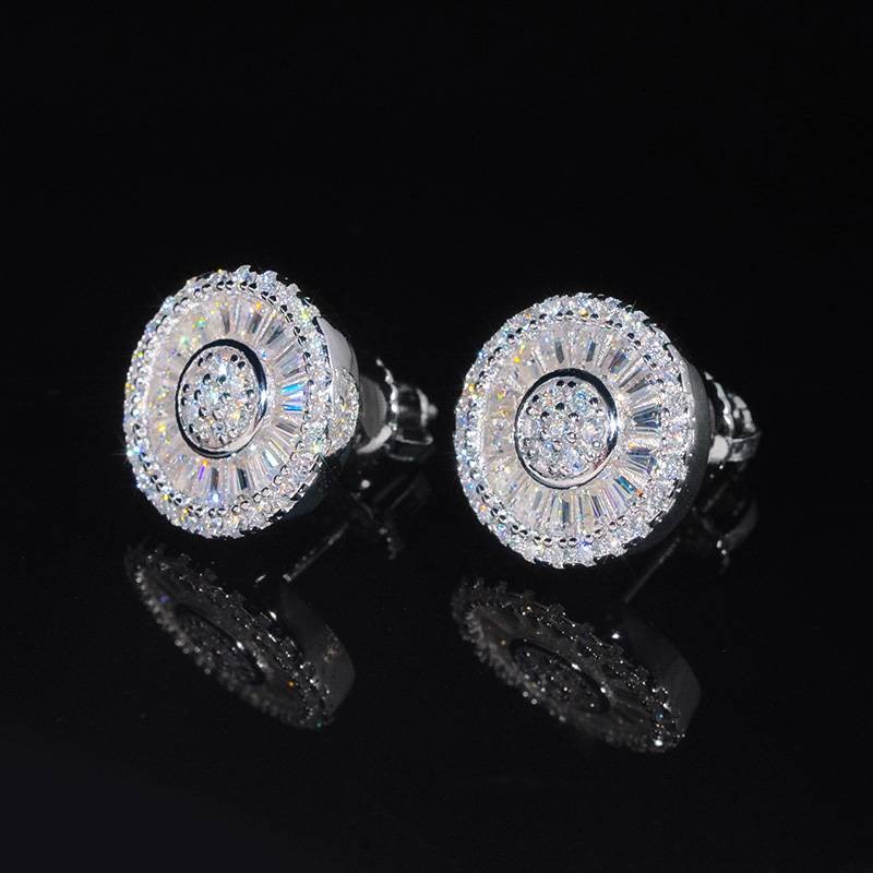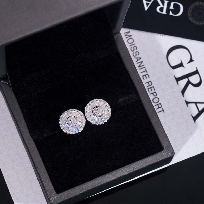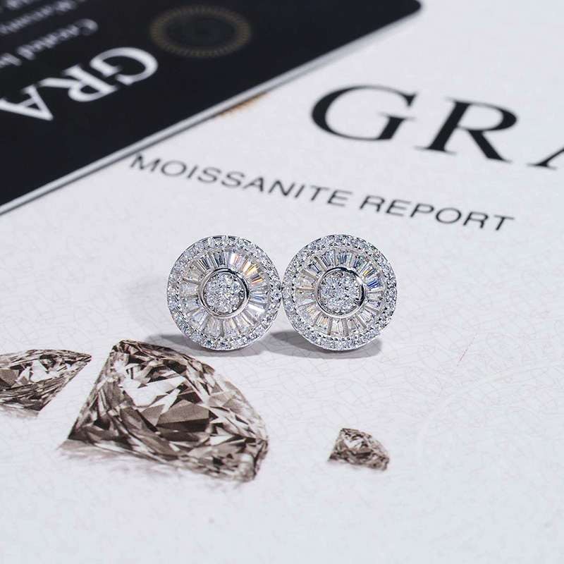 S925 & Moissanite 12mm Baguette Cut Round Stud Earrings