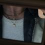 Unisex Ultra Mini Initial Yellow Gold S925 Silver Belt Buckle Necklace with Beaded Chain