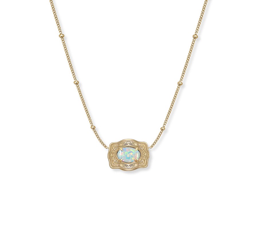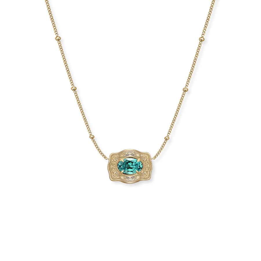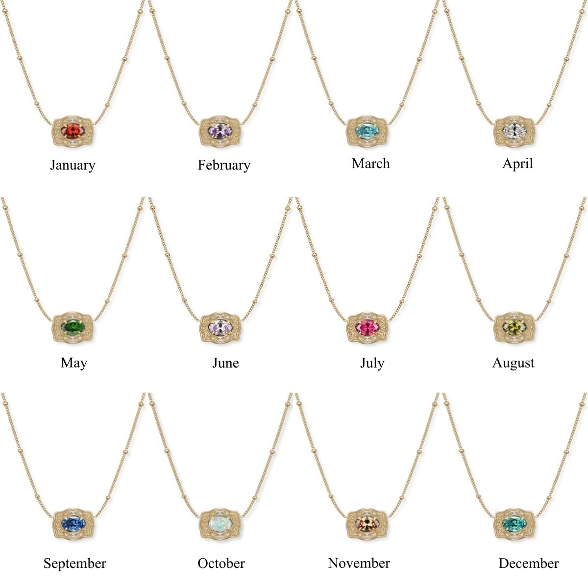 Yellow Gold Customized Birthstone 925 Sterling Silver Mini Belt Buckle Necklace with Beaded Chain