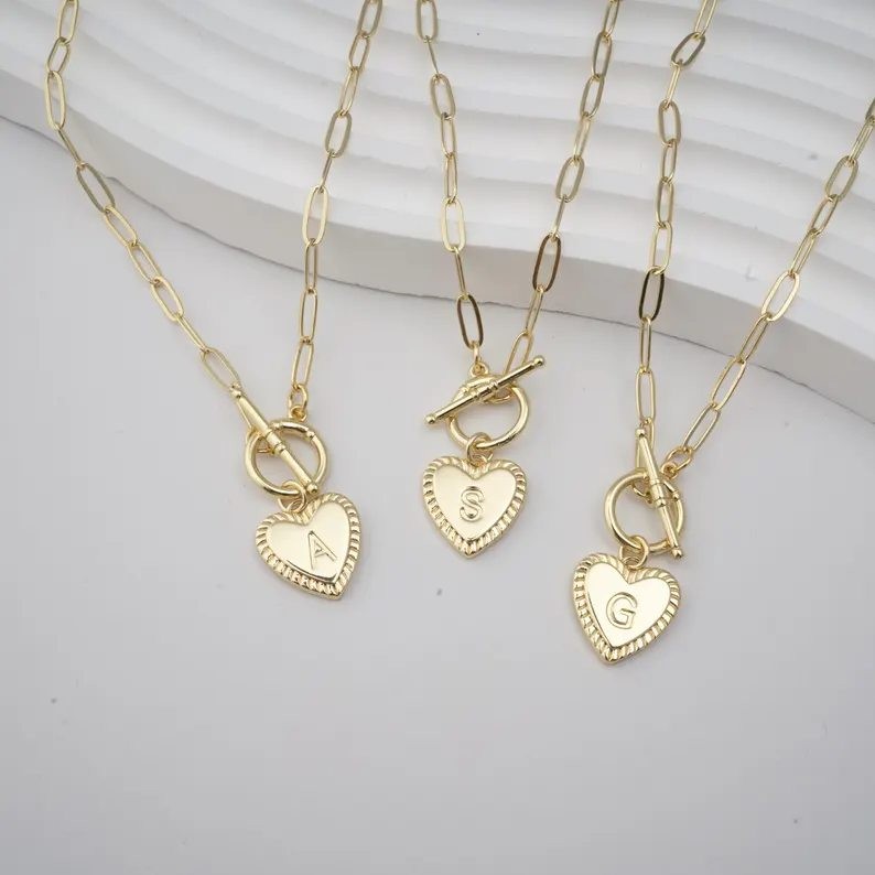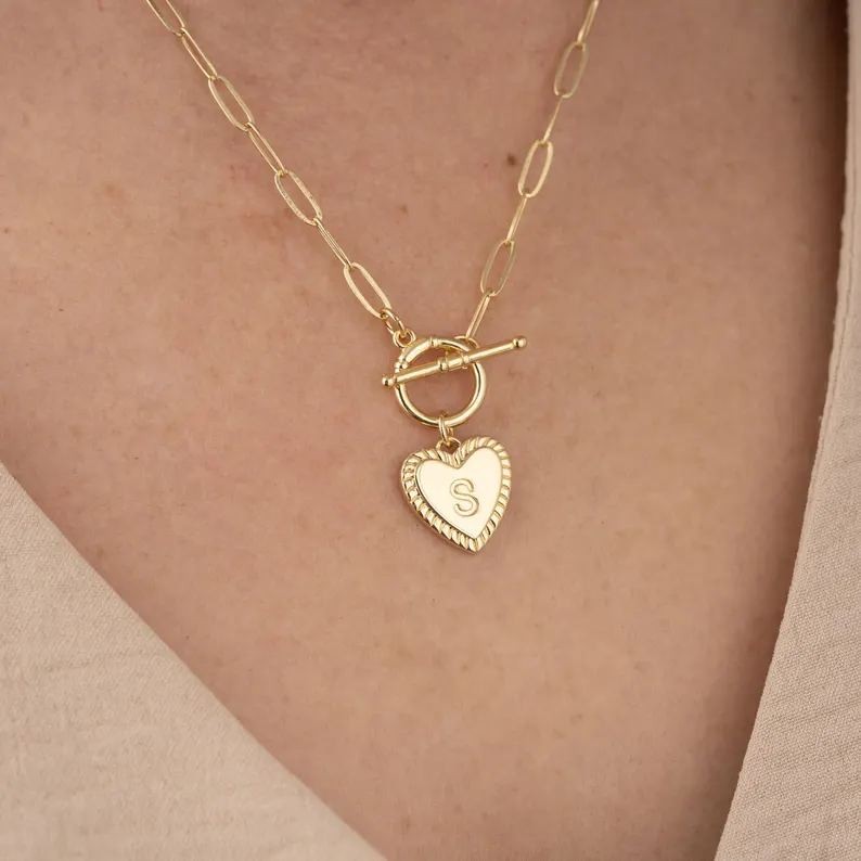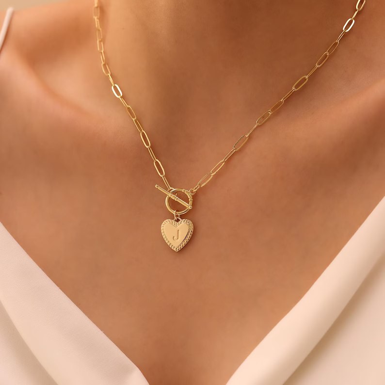 Yellow Gold Heart Initial Necklace